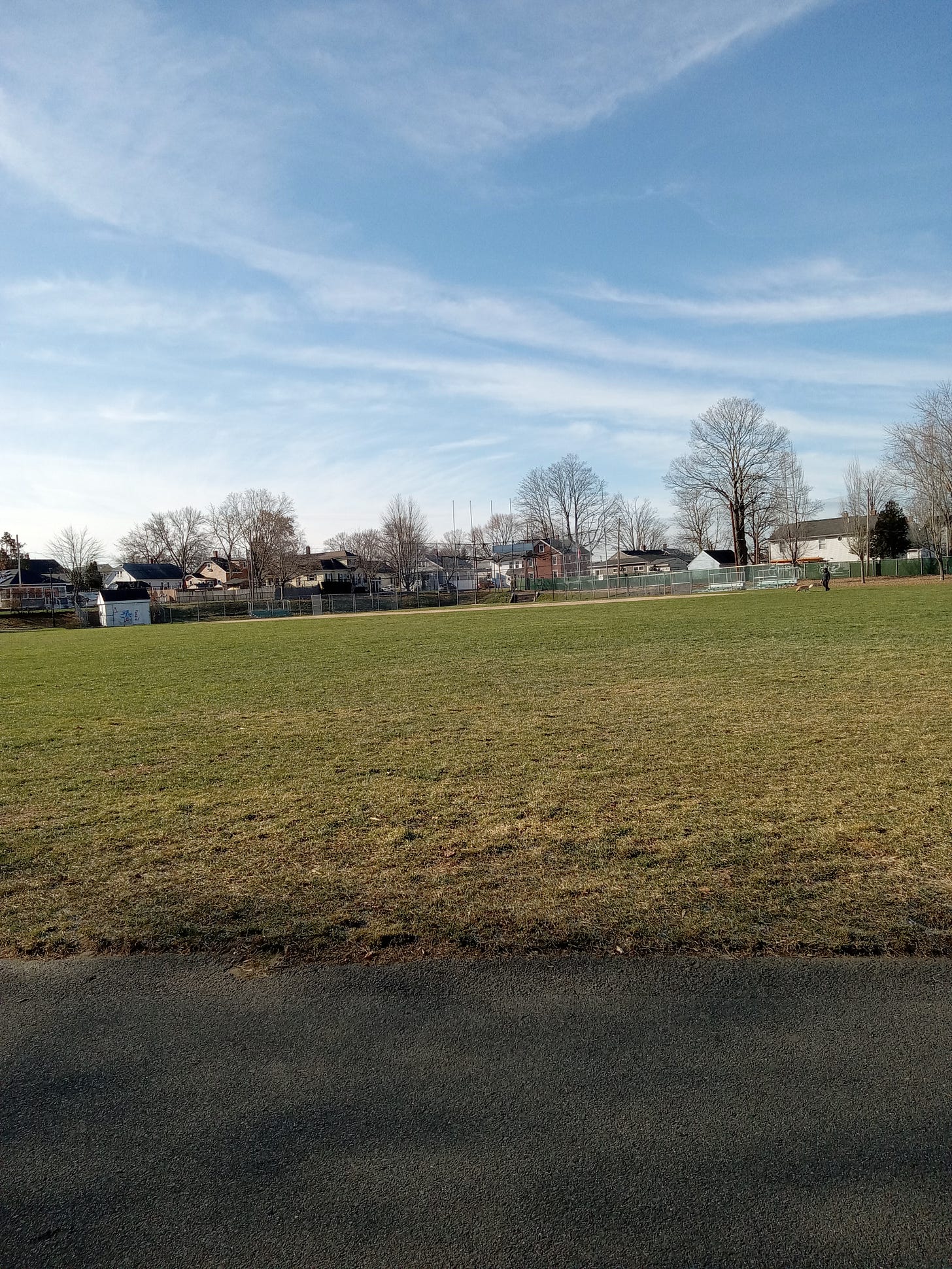 The park is a general-use area, with a playground on one side, A Babe Ruth-sized baseball diamond on another, a fairly large Wacky Ball court at the northern entrance, and a sidewalk encircling the entire parcel of City-owned land. If you walk around the oval-shaped sidewalk for 3 and 1/3 laps, you will have walked a mile. I honestly don't want to spend the time trying to calculate how many laps I have done around this place over the course of 9 years, but I do know I've gone through at least four pairs of high-dollar hiking shoes and can calculate well enough that many hundreds of dollars worth of shoe sole is embedded in that asphalt and cement.
